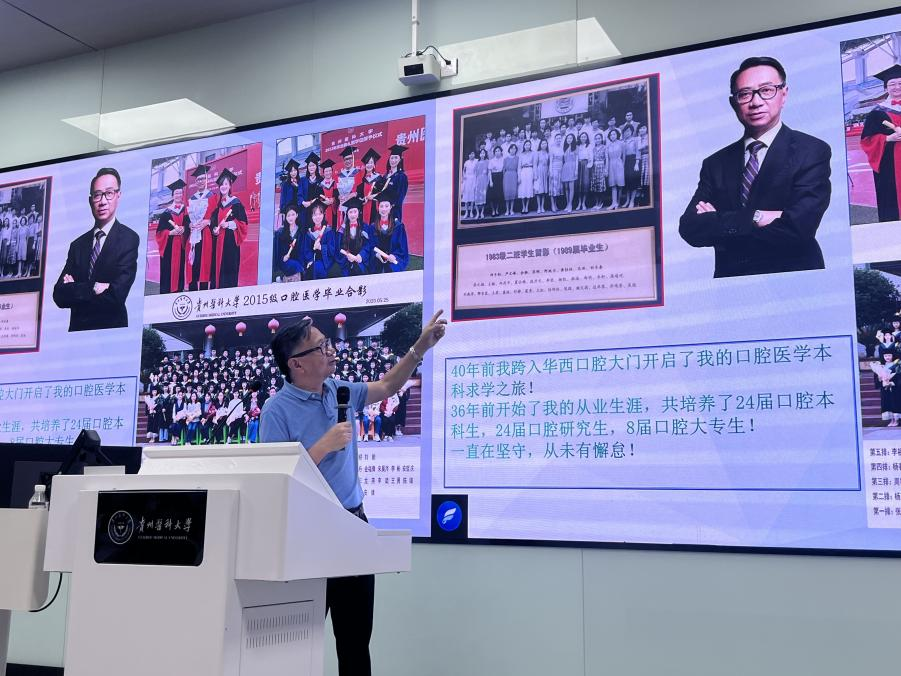结合多年临床与教学经验,马洪深入解析口腔医学生应具备的职业道德与专业能力。他指出,现代口腔医师需具备精准诊疗的临床思维、持续创新的科研能力、医患沟通的人文素养及终身学习的职业习惯。马洪结合自身求学与从业的经历,深入浅出地解读了"精益求精"的实践内涵,强调了"细节决定医疗品质"的职业理念。同时客观分析学院当前面临的挑战并提出了相应的发展策略。他强调,学院将致力于构建高层次人才集群,加强医教协同,破解发展瓶颈,为健康中国建设提供人才与技术的双重支撑。