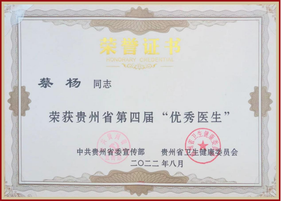 为大力弘扬“敬佑生命、救死扶伤、甘于奉献、大爱无疆”的崇高精神和“生命至上、举国同心、舍生忘死、尊重科学、命运与共”的伟大抗疫精神,8月19日,由中共贵州省委宣传部、省卫生健康委共同举办的庆祝第五个“中国医师节”活动暨贵州省第四届“百名优秀医生”“百名优秀护士”颁奖典礼在贵阳大剧院举行。我院教工第六党支部书记、牙周黏膜科主任蔡扬、手术室护士长洪梅分别获得贵州省第四届“百名优秀医生”“百名优秀护士”荣誉称号。院党委书记张军梅带队参加颁奖典礼。