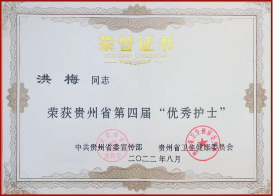洪梅在临床工作中兢兢业业、勤劳刻苦,分别于2019、2020、2021年获得年度工作考核优秀;2019年度获得“优秀护理组长”称号;2020年获得学校的“第8期发展对象培训班获得优秀学员”称号;2022年度获得“优秀护士长”称号。