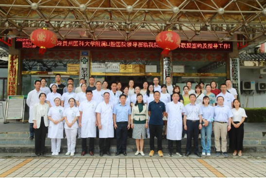 (以下简称“口腔医院”)党委书记张军梅,党委副书记、院长马洪,副院长唐正龙和口腔医学院党委副书记何雨羲带领党员代表、援沪医疗队队员、口腔义诊人员共计29人赴黎平县,与黎平县中医医院正式签署专科联盟及对口帮扶合作协议。黎平县卫生健康局党组书记杨洲,黎平县中医医院党委书记石庆标,党委副书记、院长曹鸿及相关科室负责人参加会议。
