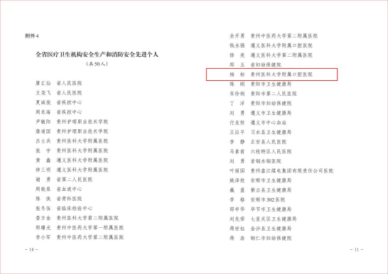 荣获全省医疗卫生机构安全生产和消防安全先进集体,设备后勤管理科杨标荣获全省医疗卫生机构安全生产和消防安全先进个人。