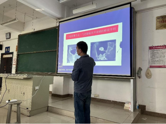 课堂上,王虎以别开生面的教学形式,生动有趣地讲授了绪论内容。王虎表示,口腔颌面医学影像诊断学就像一道桥梁,将基础和临床紧密地联系在一起,可以让同学们的理论底蕴更加扎实,为未来的实习阶段打牢基础,以便更好、更快地学以致用,向临床进阶。同学们均未接触过该课程,通过学习对课程产生了浓厚兴趣,纷纷表示受益匪浅。