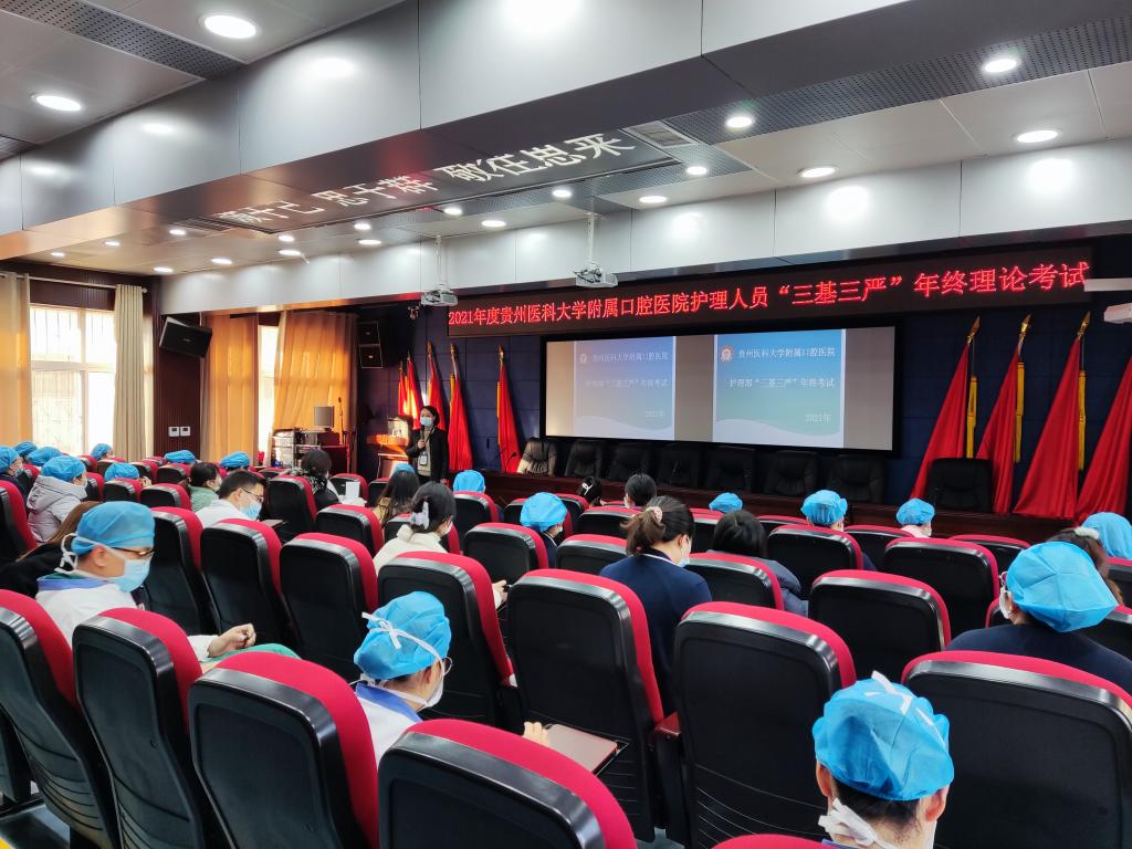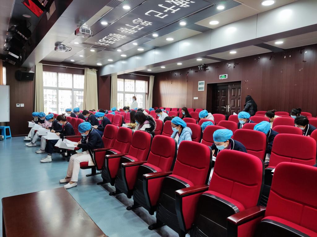 按照新冠肺炎疫情防控工作要求,参加考核人员规范佩戴口罩,按序间隔就坐,每场考核不超过50人。本次考核在行政楼5楼学术报告厅举行,共分为9:00-10:00、10:10-11:10、14:30-15:30三场进行,考试涵盖了基础护理、健康教育、口腔护理专科知识、新冠疫情防控、护理核心制度等内容,护理部主任陈仕红担任监考。