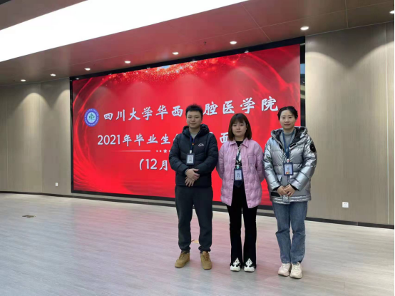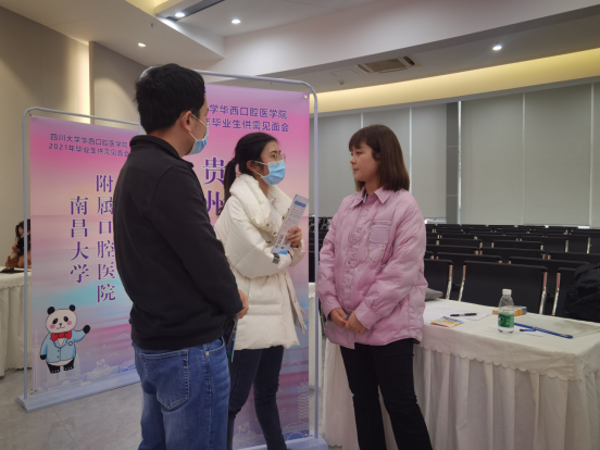副院长王永、人事科负责人齐琦和科员刘鑫颖、韦小超组成招聘组赴成都参加四川大学华西口腔医学院2021年毕业生供需见面会。参加此次见面会的共有八家医院,为华西口腔医学院2022年口腔应届博士毕业生、硕士毕业生提供择业机会。