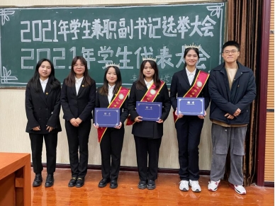 在2101教室召开第三次学生代表大会暨学生兼职团委副书记选举大会。院党委书记张军梅,党委副书记、院长马洪,副院长王永、唐正龙,党委副书记何雨羲,党委委员董强、刘洪静,党委办公室主任张娜、院长办公室主任马绮阳、学生管理科科长张婷、团委副书记刘逸洲、辅导员汪继蓉、赵会及2021级班主任柳汀参加会议。会议由院团委副书记刘逸洲主持。
