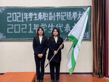在学生会会旗的交接仪式后,全员起立,共唱共青团团歌,在激昂的歌声中,第三次学生代表大会暨学生兼职副书记选举大会完美落幕!