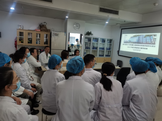 督导中,廖健就本次检查目的与流程作了介绍;口腔正畸科带教老师张翼、口腔修复科带教老师王煜婷分别以“隐形矫治推磨牙向后的解决方案”“后牙牙体缺损修复方案的选择与应用”为题作小讲座。专家组在听取讲座后,充分肯定了主讲老师的专业素养,表示住院医师规范化培训旨在医院培养合格的住院医师,希望主讲人在授课精讲细讲、突出重点、善于总结,增加课堂趣味性和互动性。同时对专业基地提出工作要求,希望基地加强日常工作建设,做到精细规范、合理有效地管理,凝心聚力全面提升住培效果。