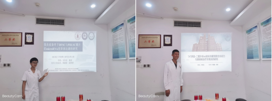 随后,李文秀和李志远两位博士分别以“微炎症条件下DFSC与PDLSC膜片的microRNA差异表达谱的研究”和“TAT多肽-二氢卟吩e6纳米光敏剂联合光动力与替硝唑治疗牙周炎的研究”为题作学术分享。希望通过科室的学术交流,敦促大家不断提高临床业务能力,积极学习国内外的新技术及最新研究成果。