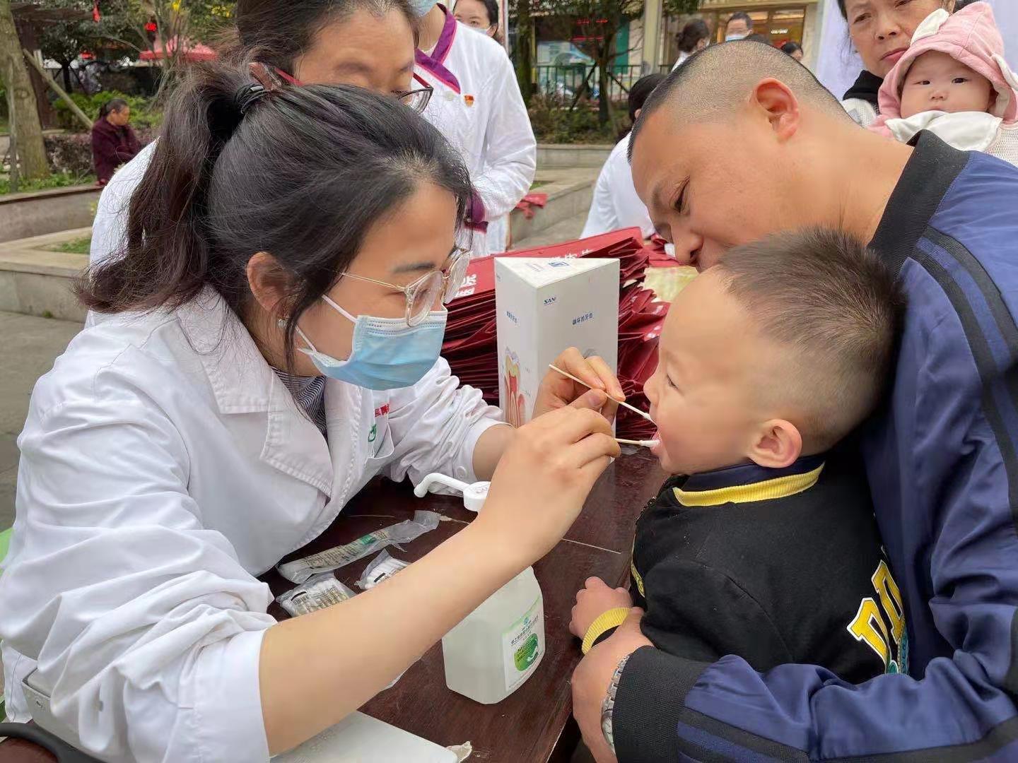 医护团队应用专业技能为当地百姓提供口腔诊疗服务、制定诊疗方案并耐心为患者和家属科普“口腔健康,全身健康”的理念;积极宣传口腔健康知识,有效利用义诊机会科普口腔疾病早期预防的理念,达到“治未病”效果;免费测量血压并发放口腔保健用品等。参加义诊的百姓络绎不绝,热情高涨,经统计此次义诊共为120余人提供了帮助。
