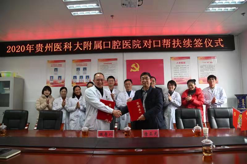会议最后,口腔医院副院长唐正龙与桐梓县人民医院院长陈寿川作为双方代表续签了第二期对口帮扶协议。会后,口腔医院一行在桐梓县人民医院领导班子的陪同下参观了口腔科,并与现场工作人员及帮扶工作小组成员进行交流慰问。