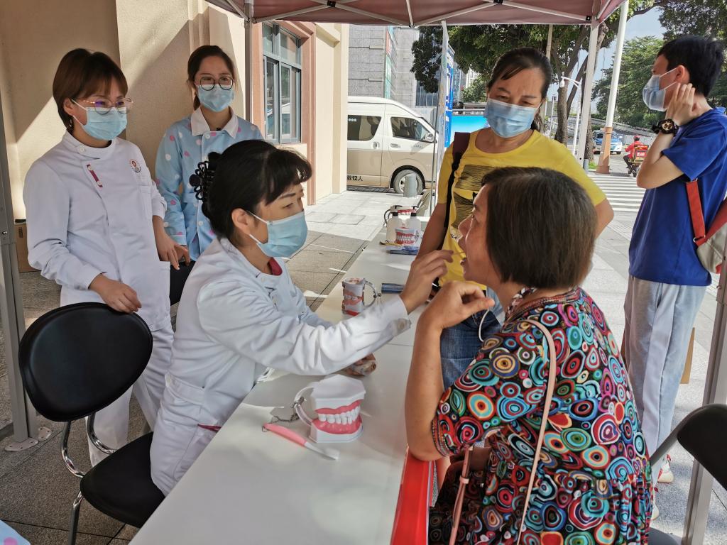 (后文简称口腔医院)借此9·20“全国爱牙日”的契机,在9月18日至20日期间,分属三地组织开展了系列公益活动,对市民、学生做口腔疾病防治科普、公益义诊、血压测量和赠送口腔清洁用具。