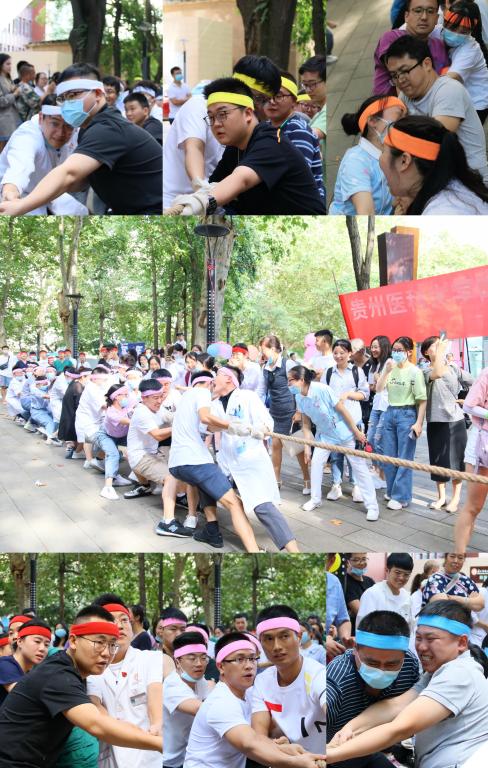 为迎接第三届“中国医师节”,进一步激励广大医务工作者慎终如始、再接再厉,保持连续作战的优良作风,激发大家拼搏进取的精神,增强凝聚力和向心力,8月14日,贵州医科大学口腔医(学)院院组织教职医护员工生开展了“2020年‘中国医师节’拔河比赛”。此次比赛由院团委组织实施,院党委书记张军梅、副院长唐正龙、党委副书记钱禾出席活动现场,为参赛选手加油鼓劲。
