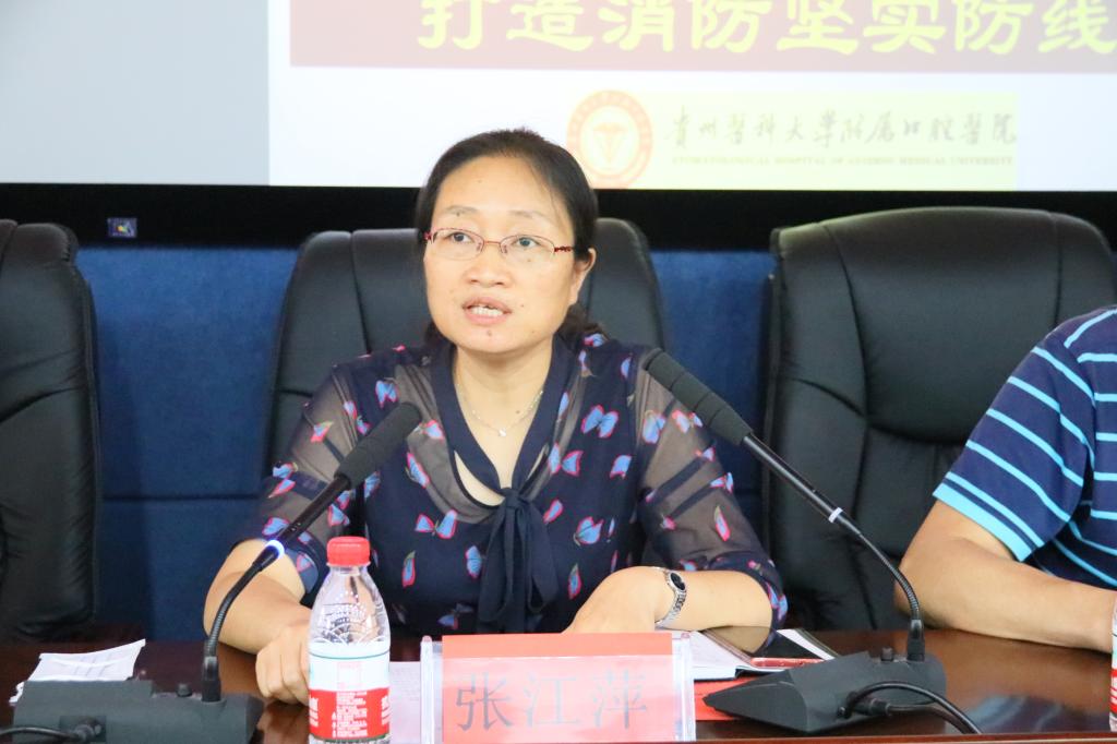 将以此次会议为契机,继续坚守安全生产红线,认真落实消防安全工作,确保消防安全工作规范有序开展,创造安全的就医环境。随后,口腔医院副院长唐正龙作医院建设情况和消防安全工作情况介绍,贵州中医药大学第二附属医院保卫科科长余开勇作会议交流发言,云岩区消防救援大队三级指挥长张桂钢、云岩区卫生健康局局长张江萍作会议发言。