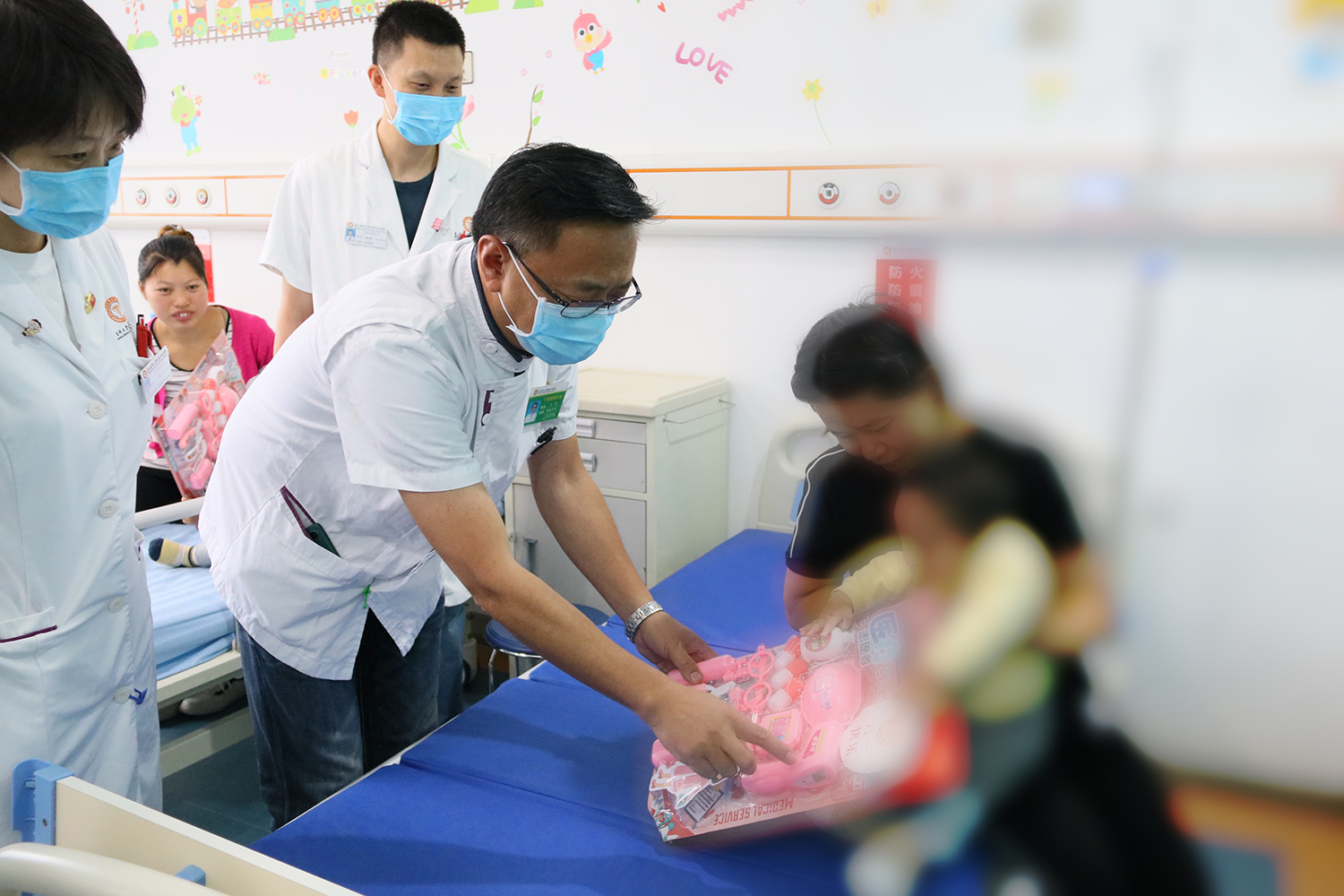党委副书记、院长马洪代表医院党政领导班子与工会主席杨蕾及相关部门同志一起慰问住院患儿,在疫情防控的特殊时期,为他们送上节日的祝福。