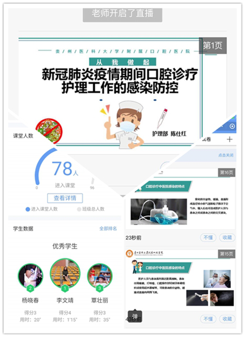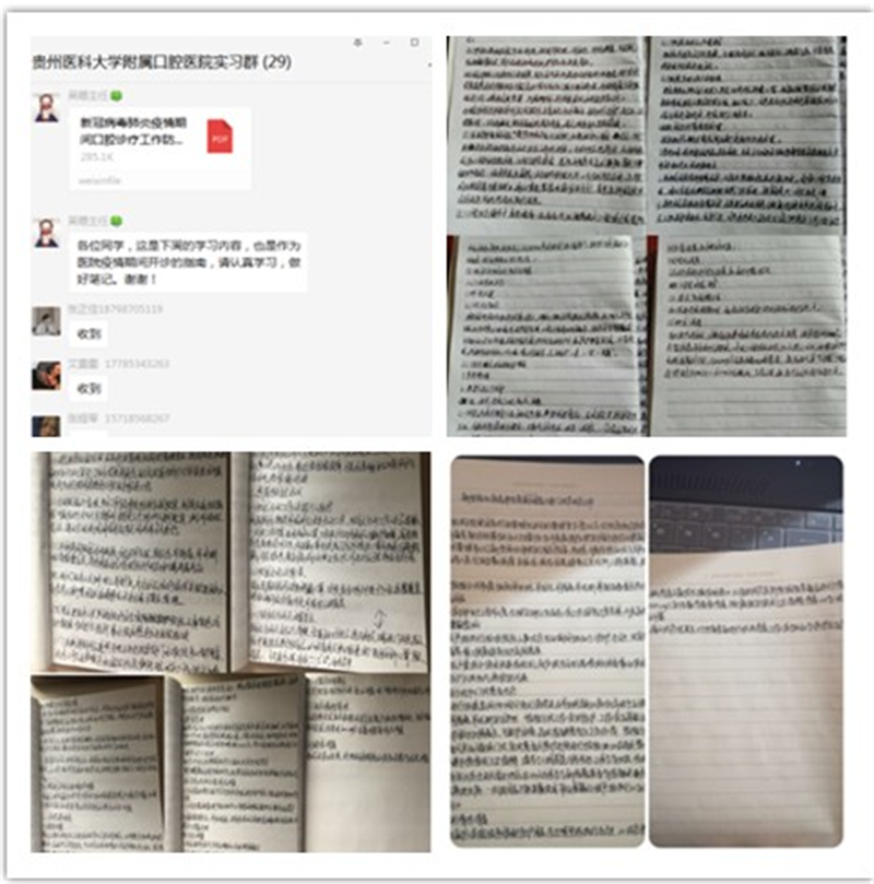 实习同学暂不回医院上班。护理部特为护理实习生制定了学习计划,每周在实习生群内下发学习资料,要求实习同学及时学习,并每周五下午18:00前将学习笔记发在实习群内,由护理部统一收集检查,同时采用雨课堂线上语音授课方式为实习生和全院护士进行理论培训。