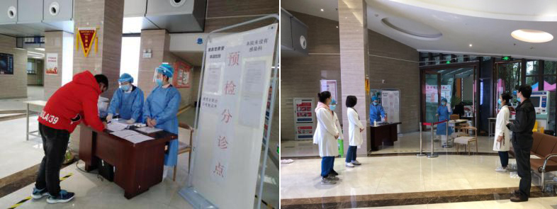 院党政领导高度重视人流分散、预检筛查和个人防护管理,疫期开诊以来,要求各部门严格执行实名制电话预约和分时段就诊政策,规划医院通道,设置提示标牌,完善消防安全管理,建立复诊患者便捷流程,并在医院增设候诊区,使来院人员能够保持1米以上安全距离。