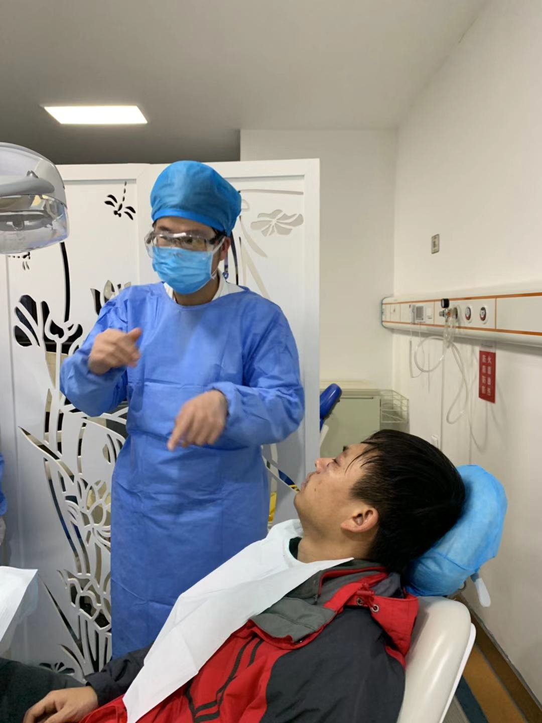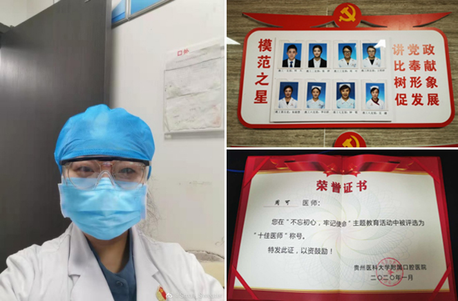 担使命,压实疫情防控的各项责任。自新冠肺炎疫情爆发以来,科室抓实疫情防控工作,重点排查外来人员,非就诊患者家属一律不得入院,要求每位就诊患者按规定进行体温测试,体温正常的经登记后方可进入就诊。疫情期间,口腔颌面外科临床一线医护人员积极备战,在岗位上执着坚守,保障广大人民身体健康及生命安全。口腔颌面外科及时部署门诊开诊,确保门诊医护人员时刻在岗处理应急情况;对于病情平稳、可择期诊治的患者,为避免出现疫情爆发,通过现场一对一沟通、网络、微信等各种途径为广大患者解疑答惑,为患者的生命安全及身体健康保驾护航,始终践行医护人员的初心使命。