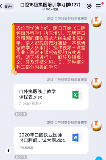 防控疫情,人人有责;众志成城,共克时艰。面对这场突如其来的疫情,口腔医学院全体师生统一行动听指挥,全面贯彻上级和学校指示,担负起应有的责任,全力开展工作。为落实口腔医学院教学工作会议精神,全力做好疫情期间本科教学工作,减少疫情对学院正常教学的影响,保证教育教学质量,切实做到“推迟开学不停学”。口腔颌面外科学教研室针对2105级口腔医学本科生即将面临的执业医师考试,积极组织本教研室教师精心筹备网上教学工作,充分利用信息化手段,为学生开展线上口腔执医医师考试培训。为更好的完成教学工作,教研室积极召开线上教学会议,做好教学准备工作。