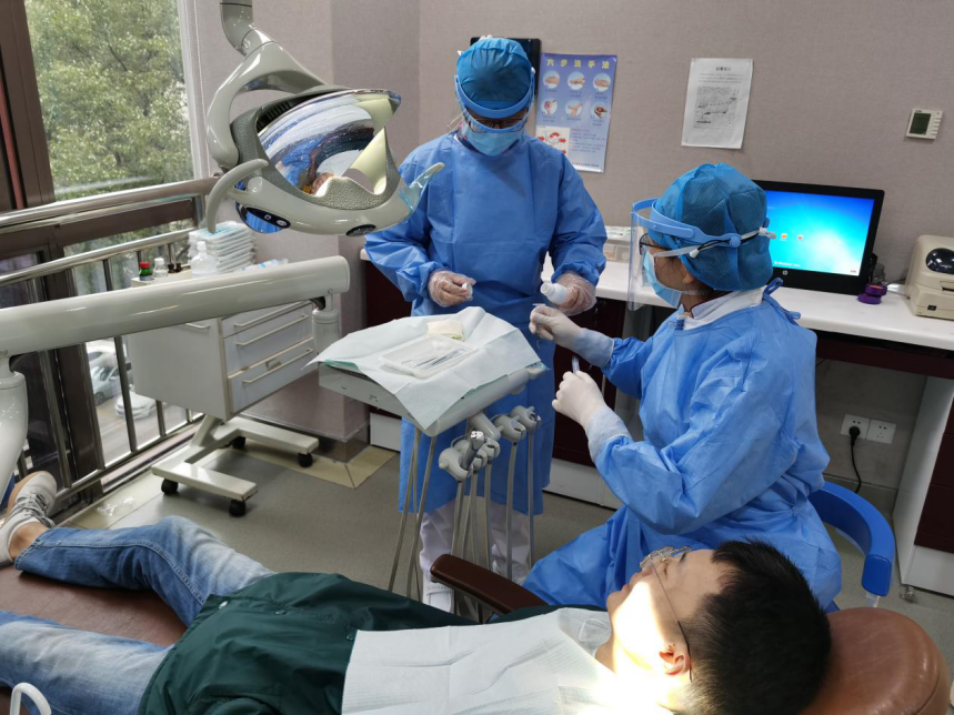 抓落实,打赢疫情防控的人民战争。按照省卫健委的相关要求,由于口腔诊疗的特殊性,在疫情期间,贵州省上百家口腔门诊和诊所全面停诊,为确保患者急症救治科室加强值班管理,除设立临床值班、总住院医师值班等,还增设贵州医科大学附属医院会诊应急值班,保障防控措施落实、执行到位,全体口腔颌面外科医护人员积极响应自愿参战坚守口腔急诊高危任务。根据医院部署安排颌面外科实行24小时开放急危重症患者的诊疗工作,主要诊治口腔颌面外伤、颌面部间隙感染、口腔颌面部恶性肿瘤等急危重症,对疫情期间必需手术治疗的患者及时开展手术治疗。