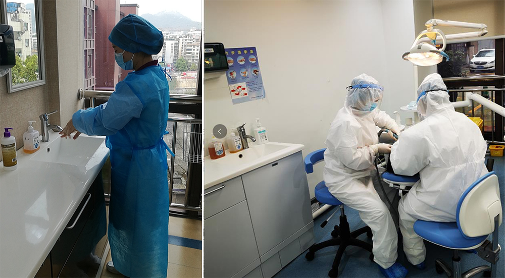 常言道:“病从口入”,清洁的手和规范佩戴的口罩斩断了新型冠状病毒的“双腿”;全员严格执行WHO的六步洗手法,时机正确,操作规范,统一流程,步步紧跟,穿脱个人防护用品按规范进行卫生手消毒。口腔医疗全面开诊,一线医务“战士”全面防护,勇往直前落实全面医疗服务。(添加手上有病毒、洗手、戴口罩的照片)