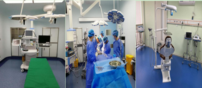 八楼手术室:设立六个层流手术间和一个麻醉恢复室,其中一个为百级手术间、一个负压手术间、四个万级手术间。百级手术间可以同期进行手术教学视频直播,负压手术间可开展各类感染手术。手术室配备先进的仪器设备:高频电刀、手术床、进口器械、麻醉机、视频直播系统、HIS网络系统等。