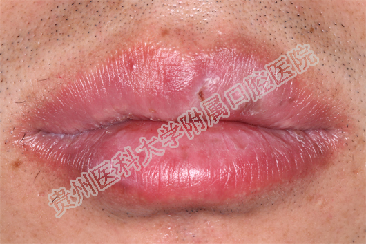 (患者治疗前后的上下唇病损对比 上图:治疗前 下图:治疗1周后)