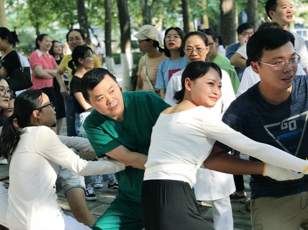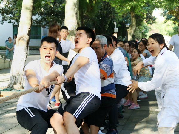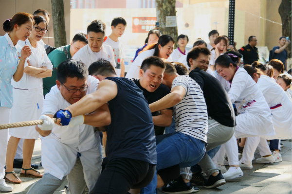 门前广场开展了喜迎2019年“中国医师节”师生拔河比赛。党委书记张军梅,副院长王永,党委副书记钱禾带领啦啦队为选手助威。经过激烈角逐,教职工2组获得冠军。