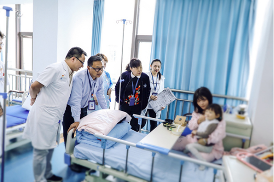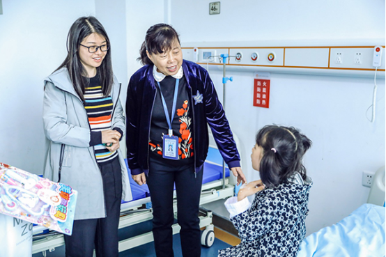 党委书记张军梅,党委副书记、院长马洪与相关部门同志一起看望患病儿童,传递节日的祝福。