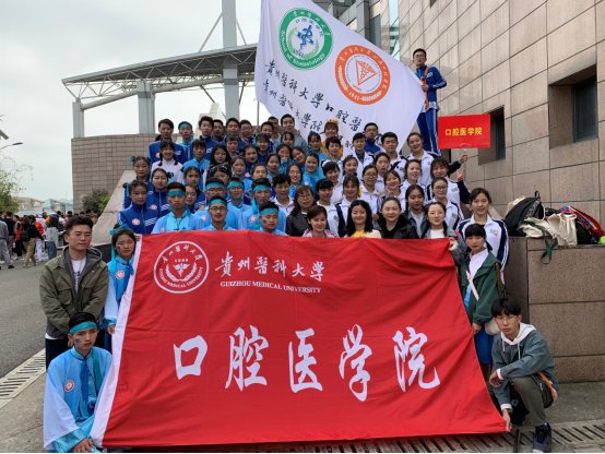 口腔医(学)院教工组和学生运动员代表队身着鲜亮的运动服,踏着矫健的步伐,整齐地走到主席台前,教工队和学生队以欢快热情的舞蹈向运动会献礼,曲罢,“四月春光,英姿飒爽,威我口腔,赛场争光”的口号响起,充分展现了口腔医学院学子良好的精神风貌。