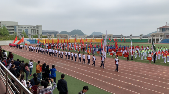 上午9时,贵州医科大学第39届校运会精彩开幕,国旗护卫队、19只教职工代表队、19只二级学院代表队组成的特色方队,进行了富有创意特色的展示,各方阵队以统一的服装,饱满的精神,响亮的口号进入田径场,整齐地走过主席台接受检验,他们个个精神抖擞,意气风发!展示出全校教职医护员工生积极向上的朝气与活力。