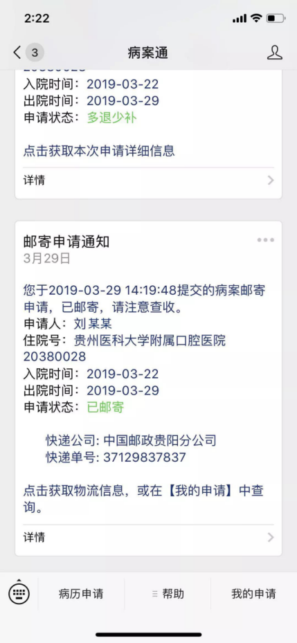 “病案通”,足不出户,复印好的病历就可以直接邮寄到家。