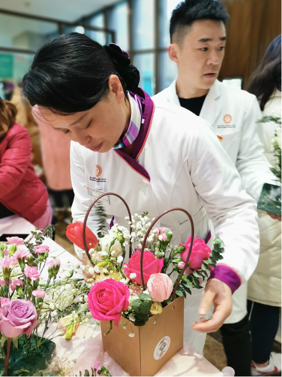 开展趣味插花文体活动及岗位送温暖活动,以此热烈庆祝“三八”国际妇女节。一首合唱《我和我的祖国》拉开活动序幕,有欢快的歌舞表演、有芳香四溢的插花实操,大家活力四射,各展风采,快闪活动气氛热烈。活动现场,医院党委及行政领导为全院女职工送上了真挚的祝福,祝愿他们节日快乐,希望通过此次活动能让大家感受到愉快和幸福,开心工作,快乐生活,一起为医院美好的明天共同努力!