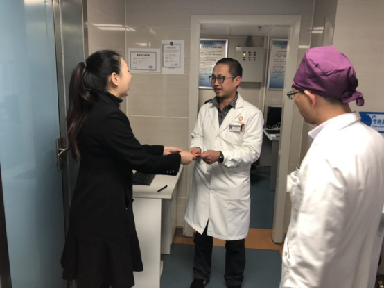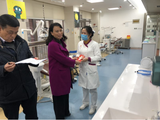 党委书记张军梅、副院长唐正龙带队,对坚持在一线值班的医务人员进行慰问。