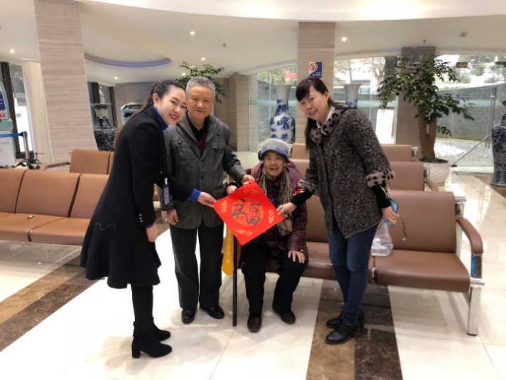 张军梅书记把“福”字送给了来就诊的老年患者,并代表医院祝他们新年快乐,早日康复。