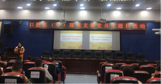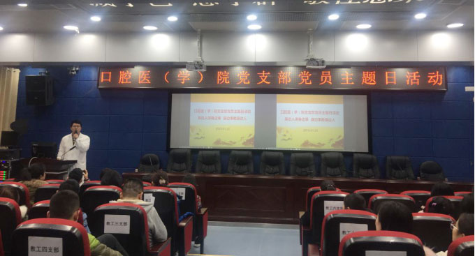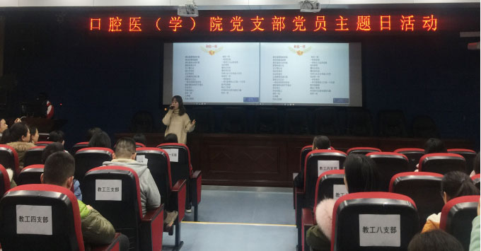 为学习典型、宣传典型、争做典型,践行“两个绝对”,争做一名合格党员,2019年1月25日下午16时,口腔医(学)院党支部党员主题活动日在北校区口腔医学院行政楼五楼学术报告厅举行,活动以“身边人讲身边事,身边事教身边人”为主题展开。口腔医学院教工党支部、研究生党支部、本科生党支部党员同志参加此次活动。
