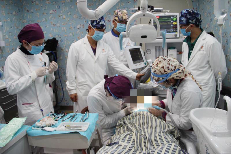不仅拥有业务水平高、耐心负责的麻醉医生和儿牙医生,对国内外的新技术新设备也积极学习和引进。以往在口腔诊疗中对不合作患儿多采取束缚式等强制治疗的方法,对孩子的心理创伤较大,易产生牙科恐惧症;门诊治疗周期较长,复诊次数多,影响儿童和家长的正常学习、工作和生活。但在全麻状态下,患儿配合程度高,利于医生操作从而提高治疗质量,可一次性治疗多颗患牙,省去了家长和患儿的多次奔波,同时不会对孩子产生任何痛苦的记忆,孩子的感受是“我睡了一觉,嘴里就长出小白牙来了”。