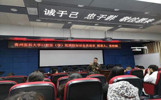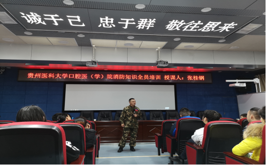 邀请了贵阳市云岩区消防大队指挥长张桂钢老师,在2018年11月20日、27日两天对全院职工进行消防安全知识普及讲座。讲座由唐正龙副院长主持。