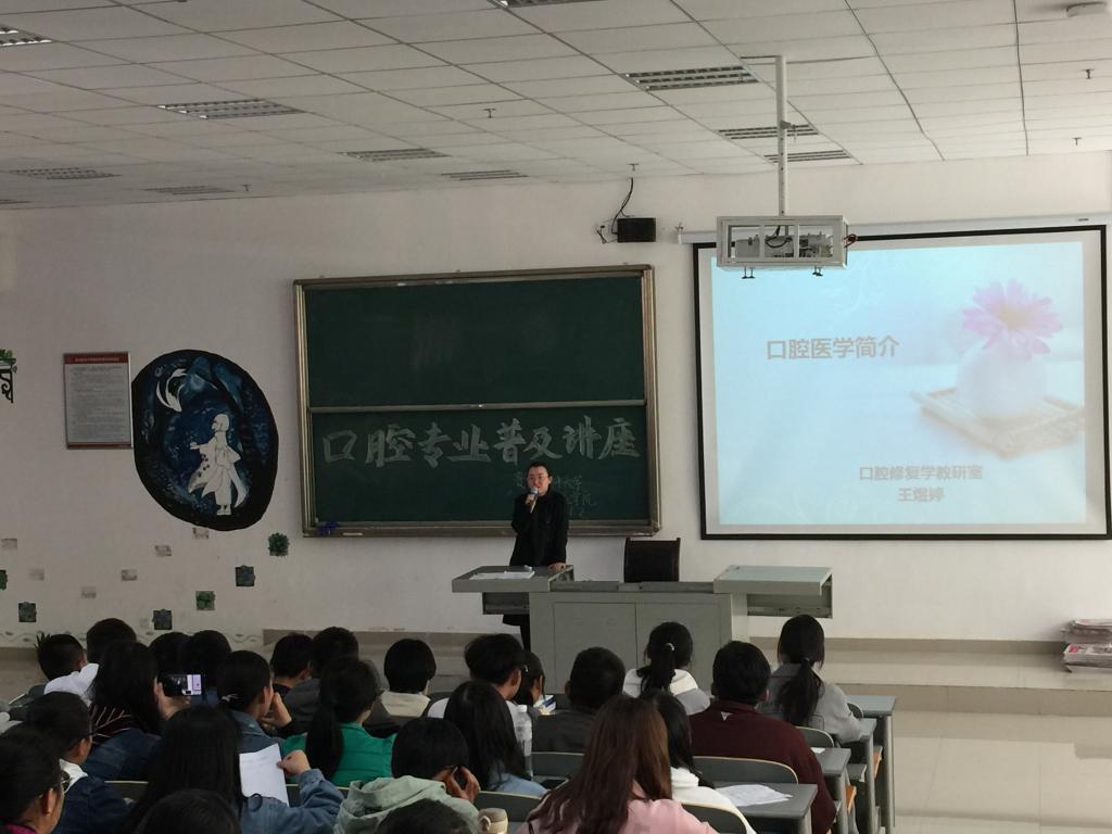 口腔修复学教研室王煜婷老师主讲,由辅导员张婷老师主持,2018级口腔医学院全体学生参加讲座。