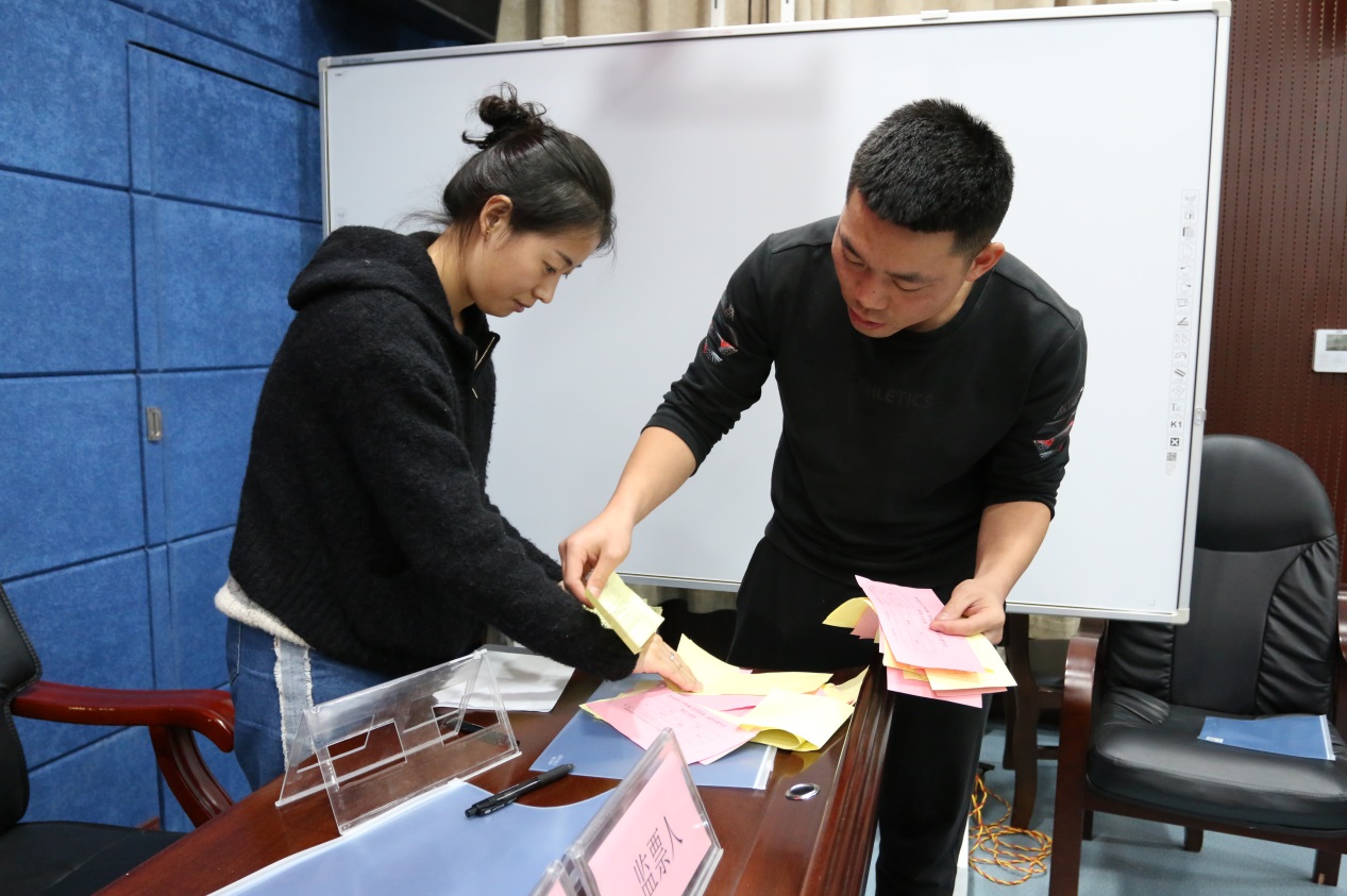 大会经过无记名差额投票选举,产生了15名工会委员会委员(按姓氏笔画顺序排列):马敏先、王远达、韦小超、刘珀羽、李文凤、吴姗、邹苑、邹婕、杨蕾、张忠平、陈琴、周天、周瑛、段姗姗、魏宏琳;等额投票选举产生了经费审委员会:张忠平(主任)、魏颖、高灵;举手表决产生了女工委员会:杨蕾(兼主任)、廖健、魏宏琳;工会主席:杨蕾。