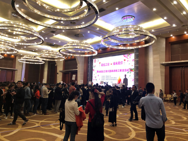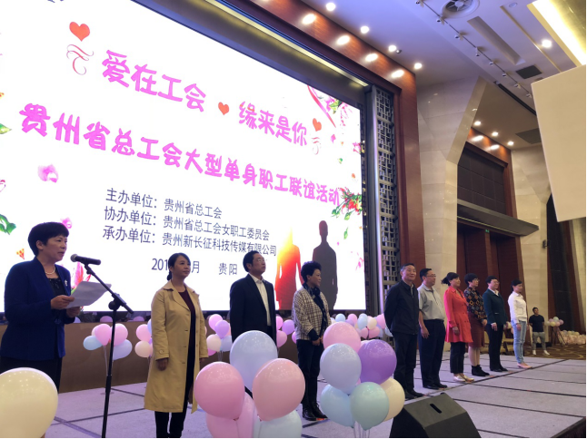 组织多名单身职工参加在贵阳国际生态会议中心举行的,省总工会2018年“爱在工会·缘来是你”大型单身职工联谊活动。省人大常委会党组副书记、副主任、省总工会主席袁周出席。省总工会党组书记、副主席杨再春讲话。省总工会党组成员、副主席、女职工委员会主任魏俊主持活动。