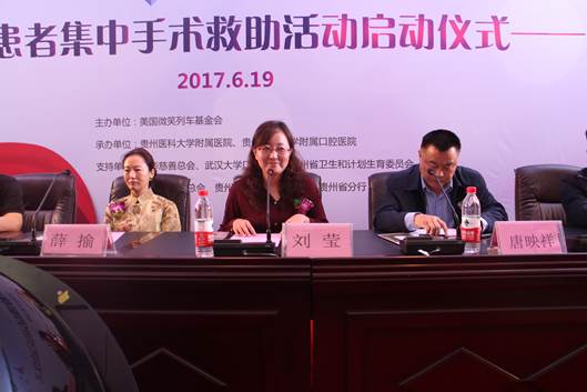 随后,中华慈善总会项目部副主任刘莹在讲话中指出,到目前为止,唇腭裂手术已达到38万例;北京大学口腔医院副教授朱洪平在讲话中提到,贵州省唇腭裂发病率达到千分之二点零八,属于高发地区。