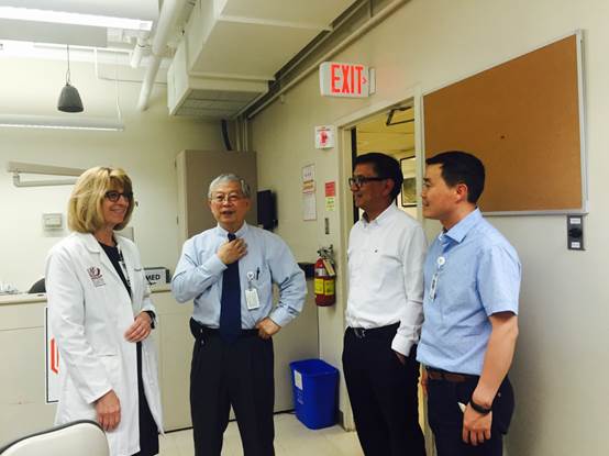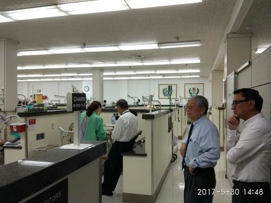 在李一鸣教授的带领下,马洪院长参观了Loma Linda大学牙学院各临床科室、消毒供应中心、口腔技能实验室、口腔技工中心及牙科研究中心,同时还看望了正在Loma Linda大学做访问学者的廖健博士。