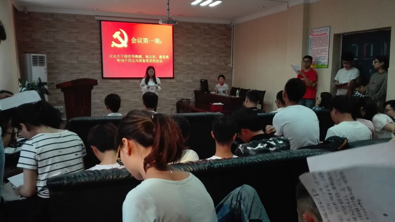 2016年6月18日,口腔医学院学生支部召开支部大会,讨论发展对象和预备党员转正事宜。会议由李长菁同学主持,党支部书记钱禾老师参会。支部全体党员、预备党员及入党积极分子参加了此次会议。会议第一项:讨论关于接收母澔葳、杨文忠、董春燕等16个同志发展为预备党员的会议。会议第二项:讨论关于接收郭平安、陈娇、丁桂园等9个同志发展为正式党员的会议。他们汇报了近一年来个人的学习、工作、生活状况,与会党员就有关问题进行了评价,并提出中肯的意见和建议。大家一致认为,这25名同志在考察期间,思想端正觉悟性高,积极参与党组织的各项活动,及时向党组织汇报近期的思想情况;工作积极,踏实肯干,起着带头模范作用;专业基础扎实,有较强的学术探究能力;生活作风朴实,群众基础良好。全体党员以投票表决的方式一致通过16名发展对象和9名党员转正的决议。