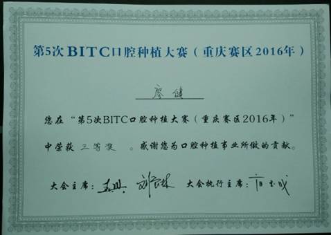 这是廖健老师本年度第二次在种植病例大赛中获奖,同时,这也是我校口腔医学院教师第三次在BITC 口腔种植大奖赛中获奖,表明91直播