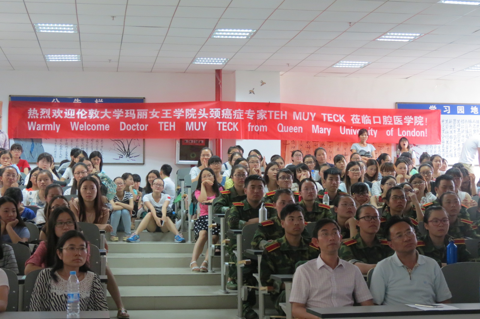 2015年8月26日至9月10日,英国伦敦大学玛丽女王学院医学与齿科研究院头颈癌症专家TEH MUY TECK博士抵达贵阳,与口腔医学院开展了深入广泛的科研学术交流,这是继去年我校口腔医学院与英国伦敦大学玛丽女王医学与齿科学院签约合作协议及“中英联合头颈癌症分子研究实验室(CBJMHNCR)”揭牌后,英方再度委派专家到我校口腔医学院进行合作研究与实验指导。TECK博士这次来华不仅在“中英联合头颈癌症分子研究实验室(CBJMHNCR)”进行了关于头颈癌症分子诊断的实验研究,而且于8月31日在口腔医学院对研究生作了Clinicaltranslation in biomarker research(生物标志物研究的临床转化)的精彩学术讲座,详尽的讲述了如何将基础研究转化为临床应用,我校口腔医学院和肿瘤医院研究生和青年教师30余人参加了学术讲座。