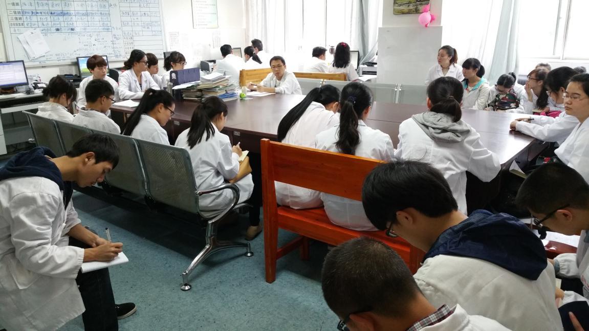 唐正龙书记首先讲诉了实习中的几点要求,提醒大家要认真学习,虚心向医生护士请教,实习期间必须遵守医院的规章制度,严格要求自己,还需要学会与病人的沟通。姚岚老师强调实习期间的仪容仪表及请假制度。吴睿老师重点强调了病房中医生、护士和病人的协同合作,同时要求同学们在实习中要文明有礼,注重仪容。最后在胡睿老师的总结和同学们的掌声中结束了这次会议。