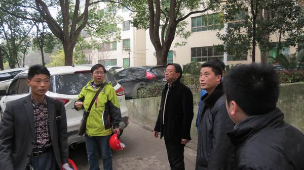 在现场,张军梅书记按学校领导的要求万般叮嘱工人们在保质保量完成工程的情况下,一定要注意安全。随后,马洪院长一行到公共卫生学院进行改建工作上的指导,并听取工程师的改造意见。