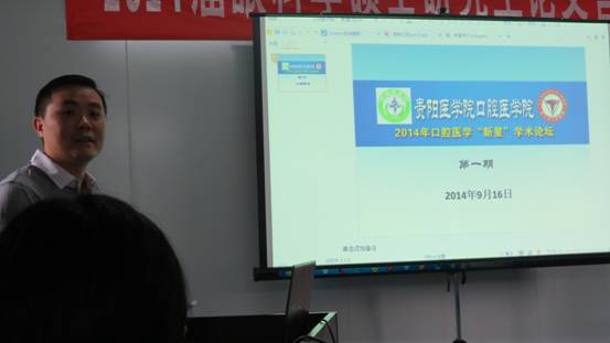2014年9月16日下午16时,贵阳医学院口腔医学院2014年口腔医学“新星”学术论坛在贵医附院门诊六楼眼科会议室举行,会议由教学科研管理科科长廖健博士主持,参加论坛的师生共计80余人,来自口腔修复科的贾源源、口腔内科的彭颖、口腔颌面外科的王远达和口腔正畸科的王藪馨4位年轻教师分别从不同的研究方向做了深入浅出的学术报告,演讲内容精彩丰富,现场讨论异常激烈。最后,口腔医学院马洪院长对本次论坛进行了总结,他表示对此类学术论坛大力支持并寄予厚望,并为论坛提出了一些宝贵的意见和建议。该活动为提高口腔医学院科研水平,活跃学术氛围,加强各学科之间的交流,构建学术团队,增强口腔医学院教学、科研及临床综合实力起到一定的积极作用。