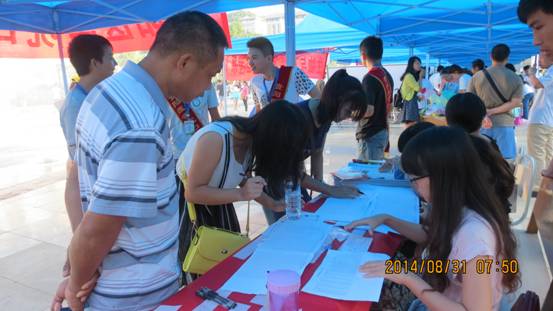 2014年8月31日早上7:00口腔医学院负责迎新的老师和学生们已经早早的到达迎新地点,安排好工作,等待2014级新生的到来。