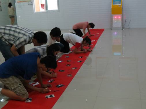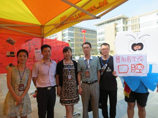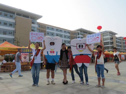 2012级同学积极参与到迎新工作中来,为了让学弟学妹们一踏入贵阳医学院就能感受到我们口腔的特色、口腔的热情,同学们聚在一起亲手DIY了一幅18米长的横幅和一块富有特色的展板,用一张张的照片、一句句的标语展现了口腔人充满活力的一面,同时也表达了大家为新生的到来感到十分的喜悦;口腔医学院展出了学生用离体牙齿做成的吊坠、钥匙扣等精致饰品。
